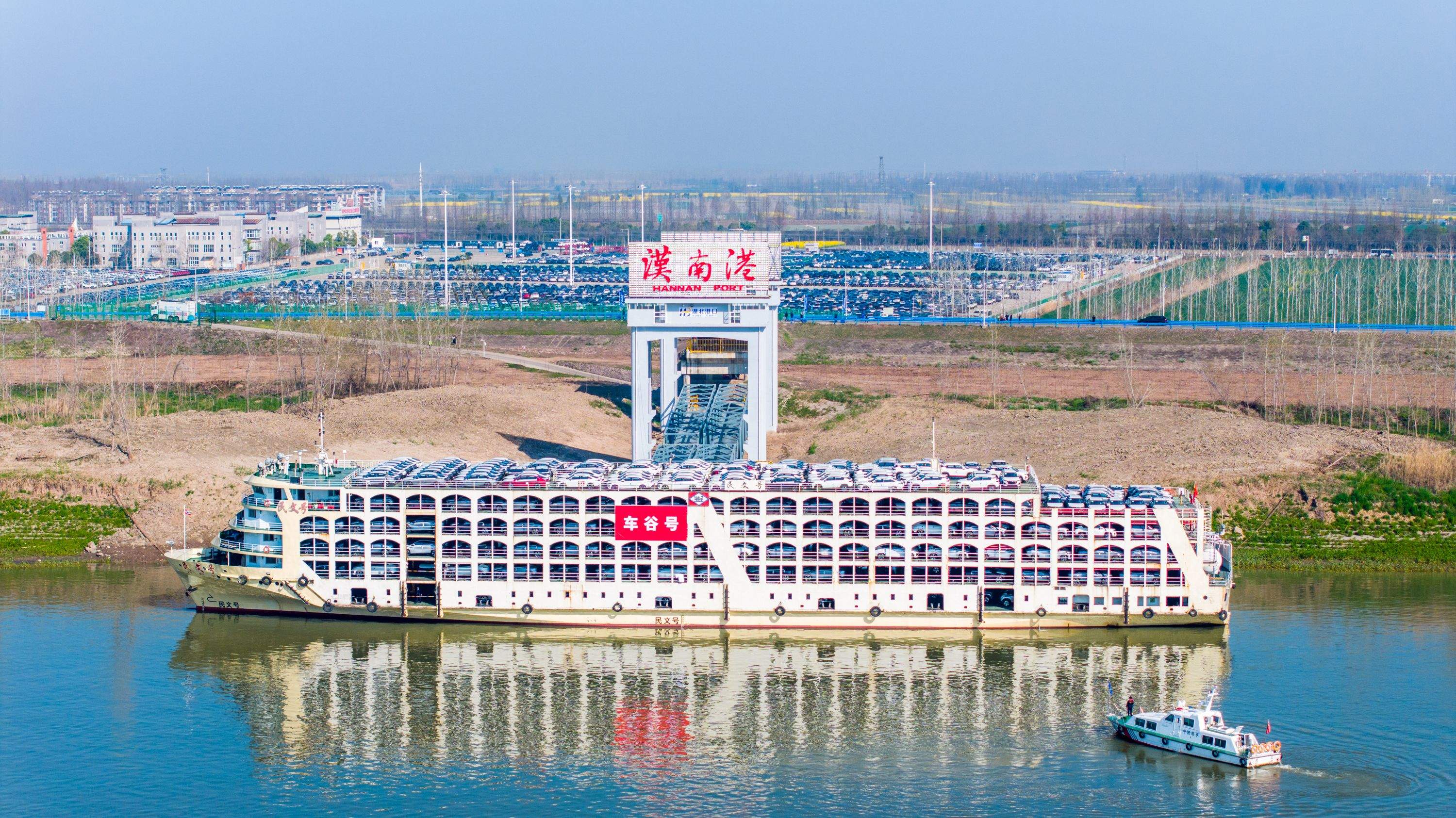 载满“车谷造”新能源汽车的滚装船从汉南港启运出海。通讯员田钰杰 摄