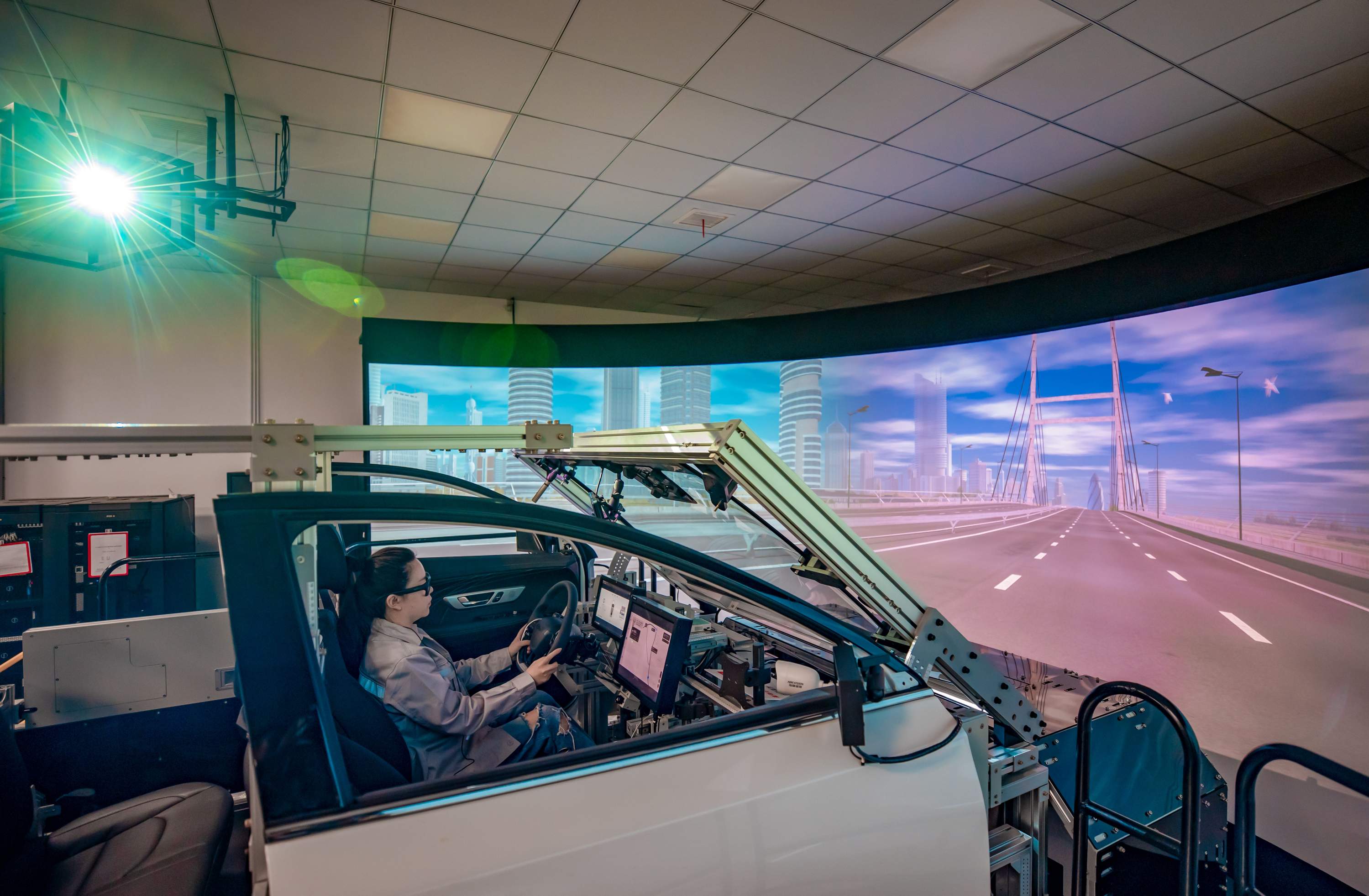 东风汽车研发总院工程师正在仿真实验室里进行测试。 通讯员供图