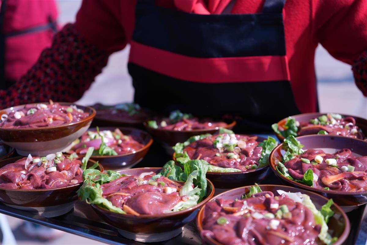 中午时分,新鲜的猪血、内脏、排骨经大厨巧手烹饪,醇厚鲜香的刨汤便端上餐桌,村民与游客以坝坝长桌宴的形式围坐畅谈,在热气氤氲中感受地道年味。与此同时,建始县业州镇金建社区、宣恩县沙道沟镇两河口村、来凤县旧司镇后坝村等20个特色乡村同步开席,各地结合地域特色打造的“刨汤+”体验活动。