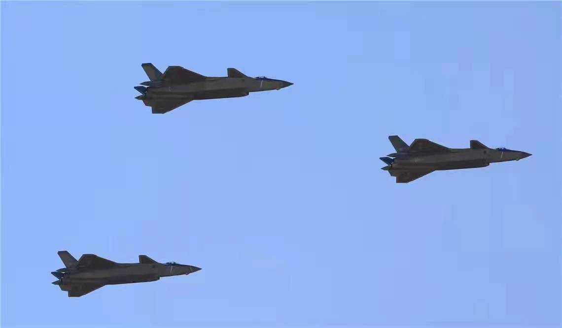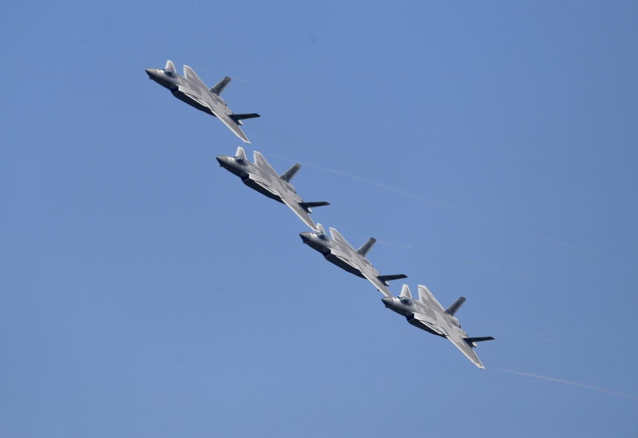 2022年中国航展,歼-20进行编队飞行表演。