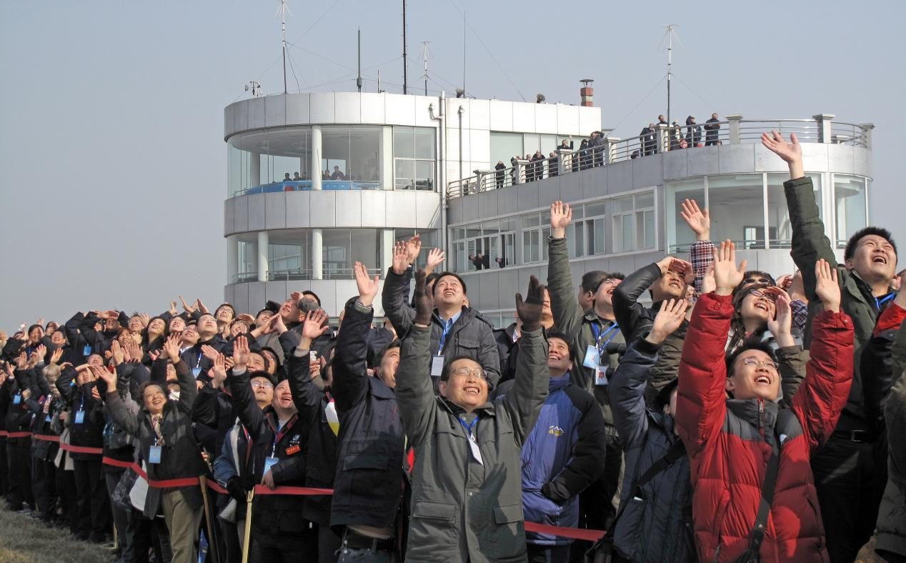 2011年1月11日,歼-20验证机01架首飞现场,人群欢呼雀跃。