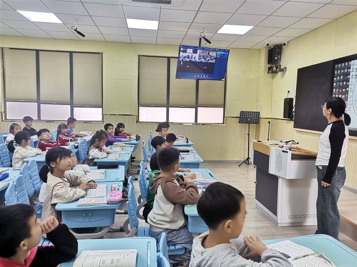 教联体改革赋能,黄梅县第一小学一校四区的学生“同上一堂课”。