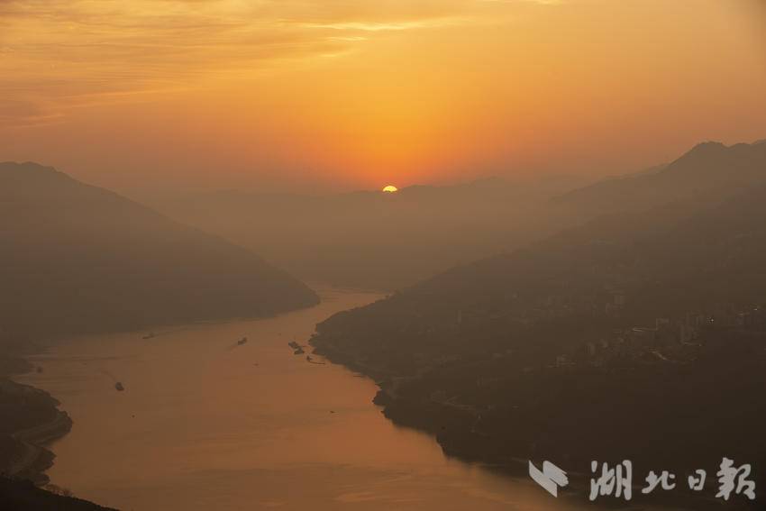湖北日报客户端讯(通讯员陈功龙)1月11日清晨,天色熹微,长江岸畔的霞光已悄然漫染天际,远山层叠似披轻纱,江面漾着温润金晕,早行的舟楫悄然划破粼粼波光,在朦胧山影间晕开几分灵动;须臾之间,一轮红日自群山逶迤的轮廓间探出头来,先是一抹橘黄,倏忽间跃出山巅,万丈光芒奔涌而出,万道金辉倾泻而下漫染江峡,晨雾袅袅消散,层峦叠嶂渐次清朗,江水潋滟,将天光揉碎成满川星子,山河轮廓也自朦胧柔婉间渐次舒展成朗阔模样,巴东的晨,便在这一轮日出里褪去轻纱,尽显其浑厚灵秀的本真容颜。
