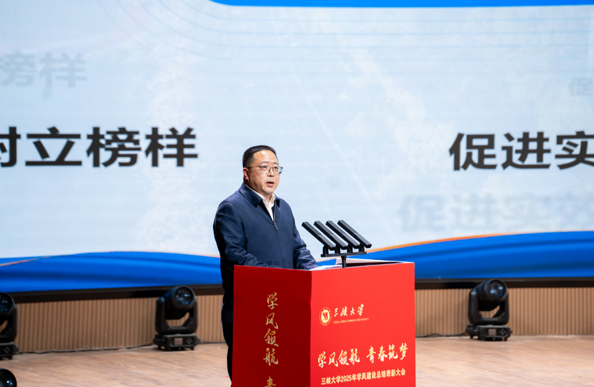 本次学风建设总结表彰大会在师生齐声高唱的校歌《求索》中圆满落幕。站在事业发展的新阶段,三峡大学将持续深化“学风领航”工程,让严谨求实的学风成为校园最美的风景,让奋发有为的青春在民族复兴征程中昂扬绽放。