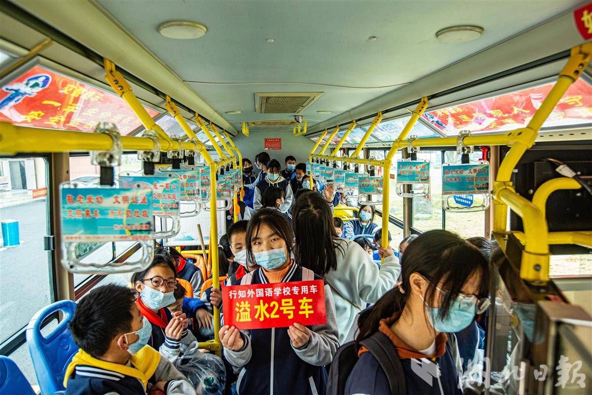 竹山县行知外国语学校的学生乘坐“校园直通车”回家