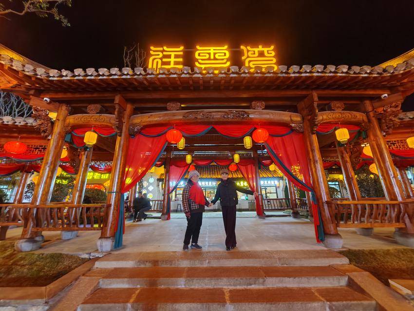 尽管是三九寒冬,祥云湾却依旧洋溢着热情与活力,成为名副其实的“灯火之夜”“音乐之夜”“花船游曳之夜”。游客们穿梭于各个景点,赏美景、观演出,乐享这别具一格的小江南之夜,欢声笑语回荡在景区上空,驱散冬日的严寒。