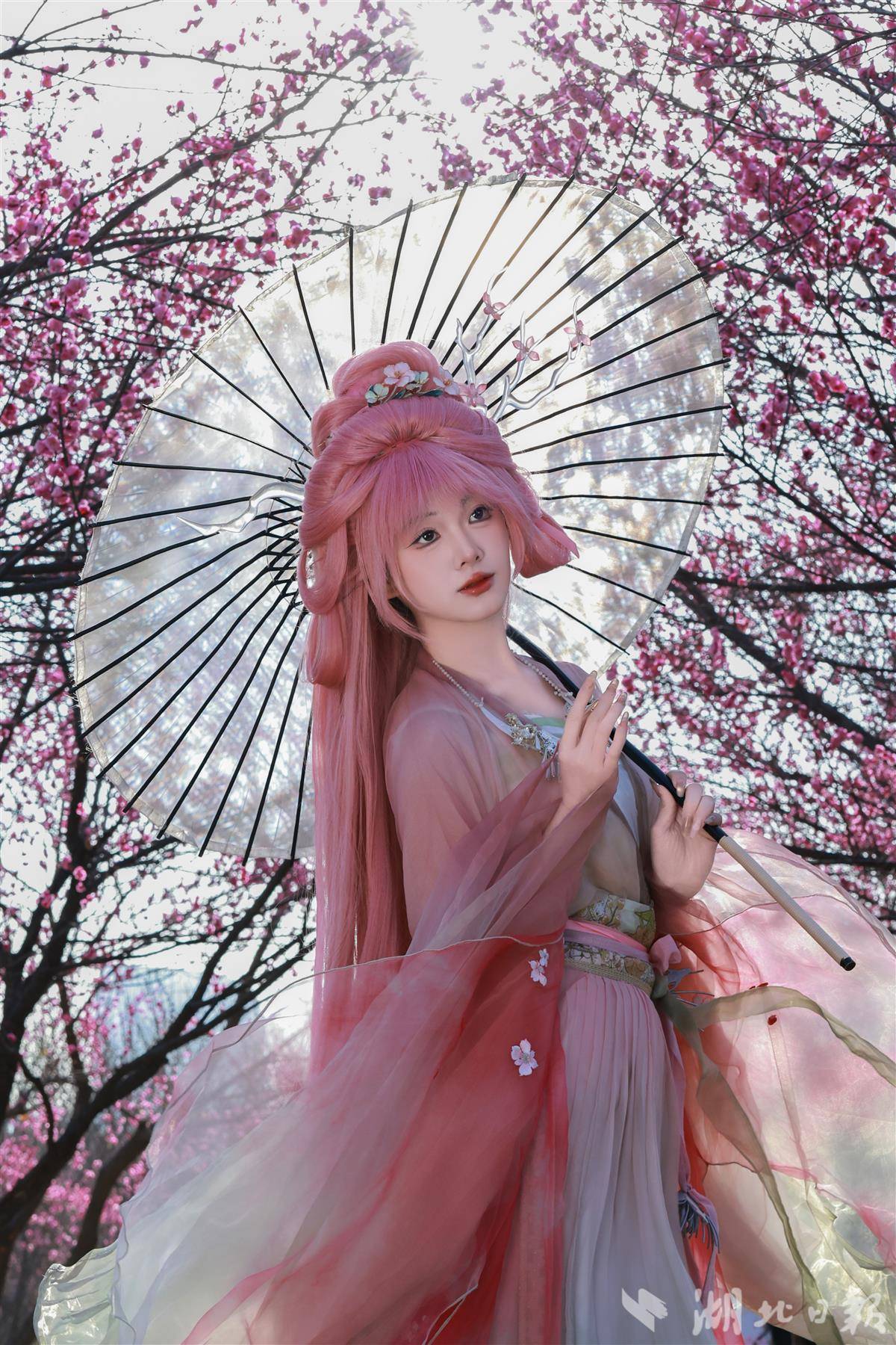 穿着汉服的女生在梅花坡拍照。(受访者供图)