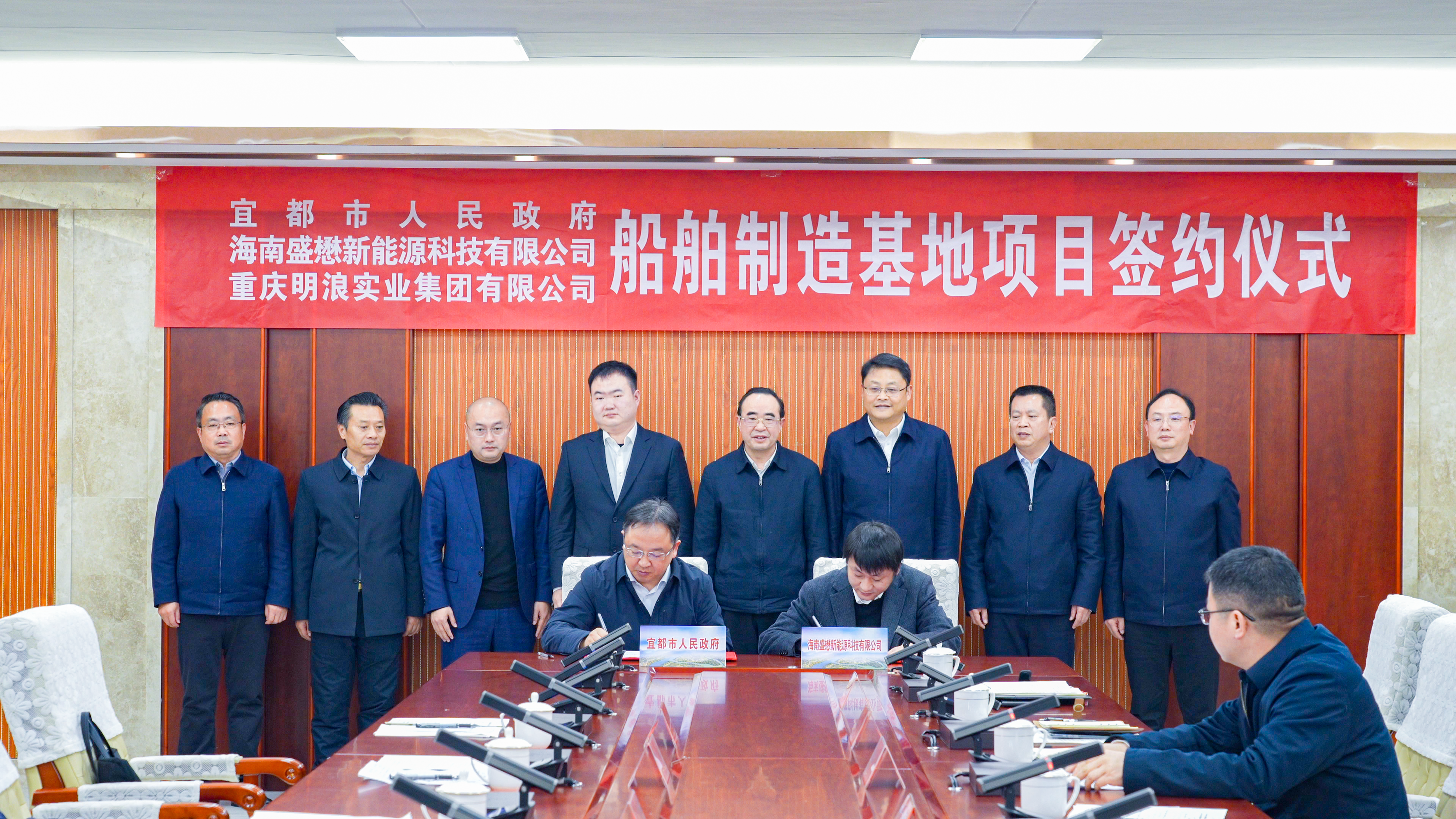 湖北日报讯 (记者文凯、通讯员朱灿义、黎文来)1月12日,海南盛懋新能源科技有限公司、重庆明浪实业集团有限公司分别与宜都市人民政府签署合作协议,两家企业将在宜昌产投(宜都)绿色智能船舶产业园投资建设新能源船舶制造基地。