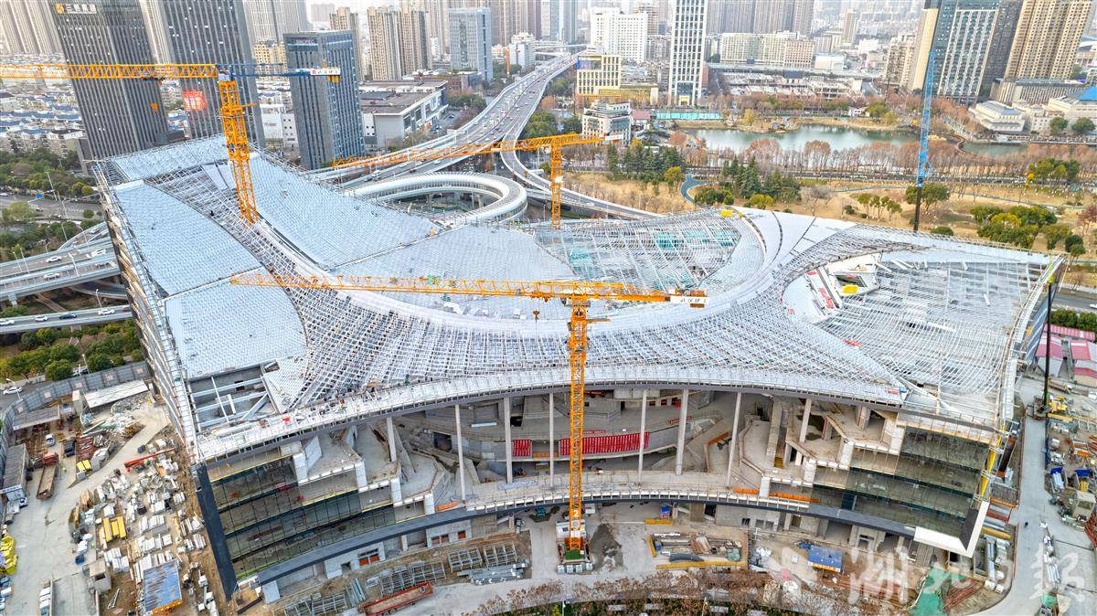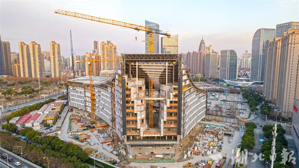1月10日,位于武汉市王家墩中央商务区的武汉图书馆新馆项目外立面正进入“亮装”冲刺阶段,铝镁锰金属屋面施工稳步推进,预计2026年底正式开放迎客。
