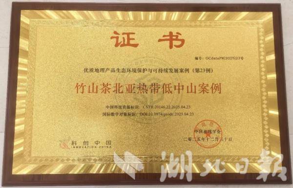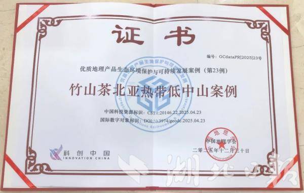 第二张“绿色名片”是地标生境。2025年12月30日,中国地理学会和中国科学院地理科学与资源研究所在北京召开《地标生境新质生产力赋能“两山”转化和高水平开放研讨会》。会上,竹山县成功入选“地标生境新增案例”;竹茶集团、星梦公司、圣水公司、友花公司被新增为“地标生境案例企业”并颁发证书。