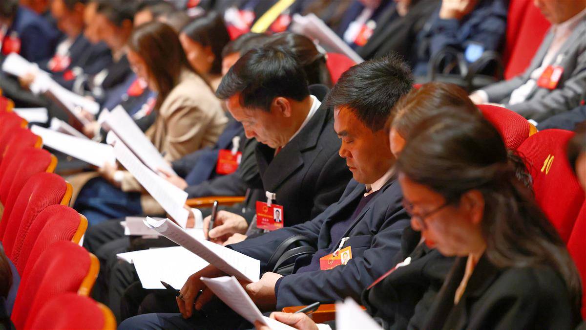 出席会议的代表委员认真听取政府工作报告
