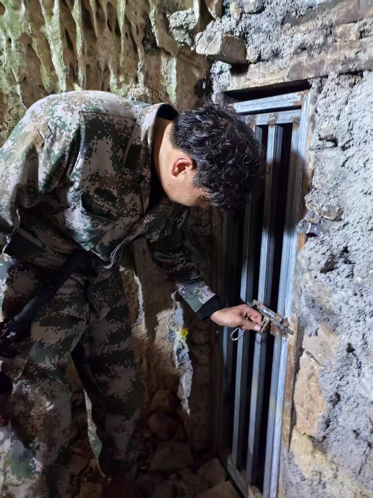 防止盗采“三宝洞”里的钟乳石,塔坪村村委会为“三宝洞”安装了门,上了锁。