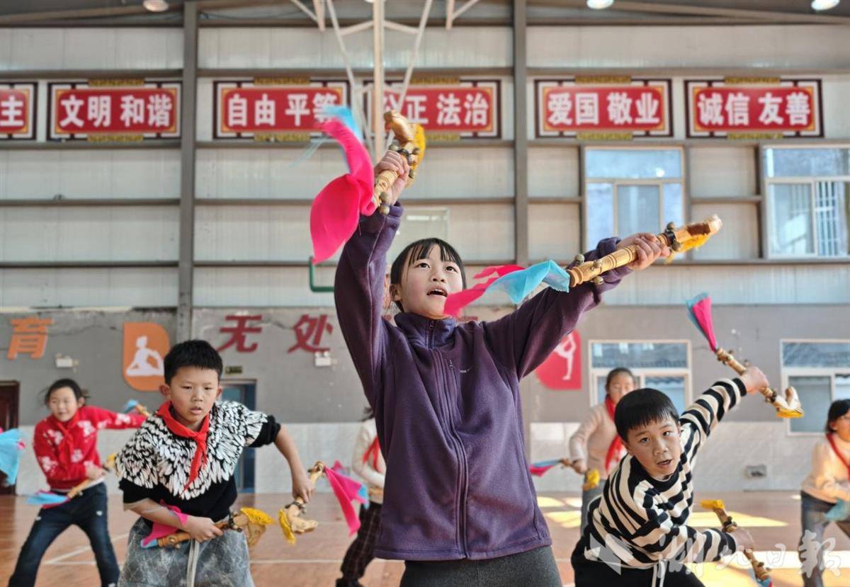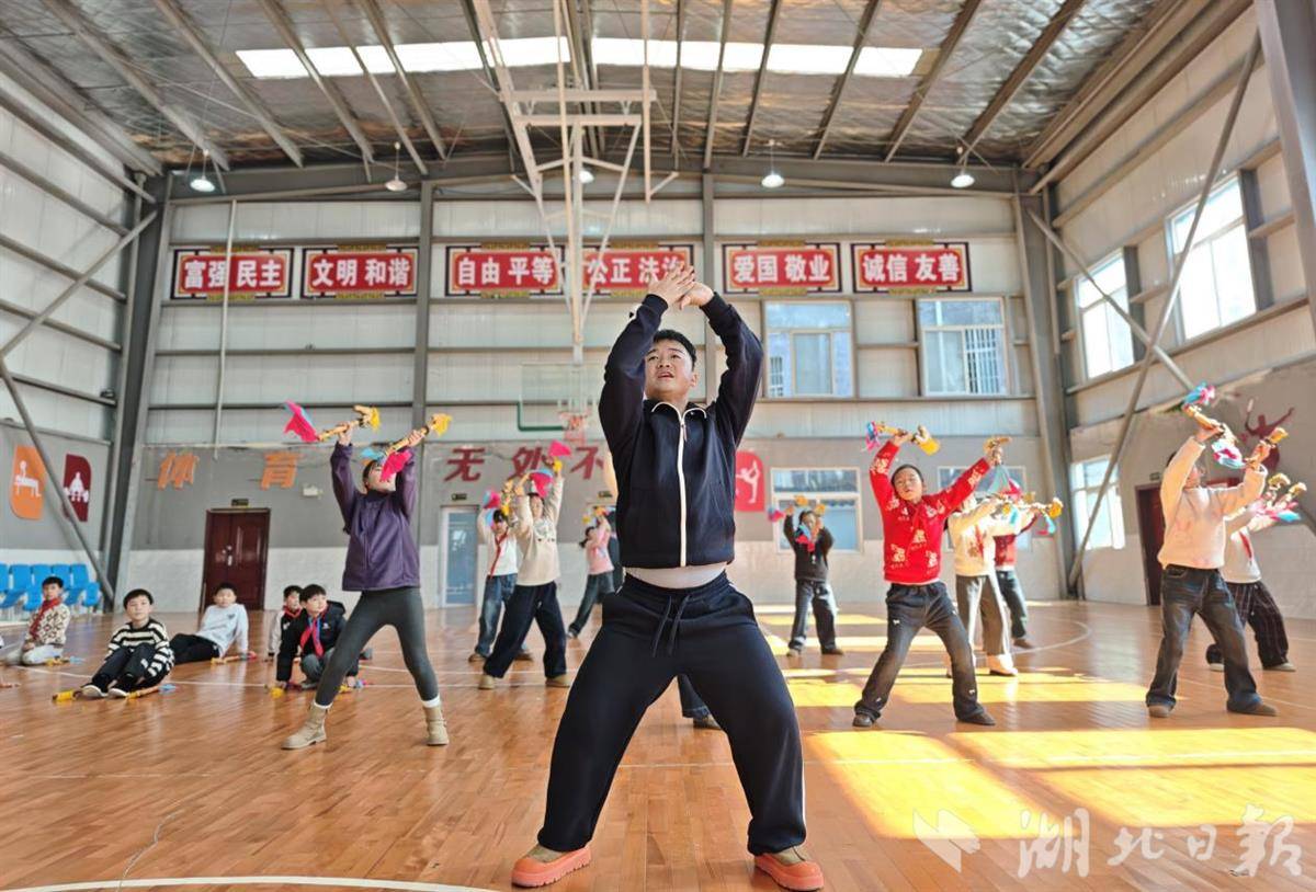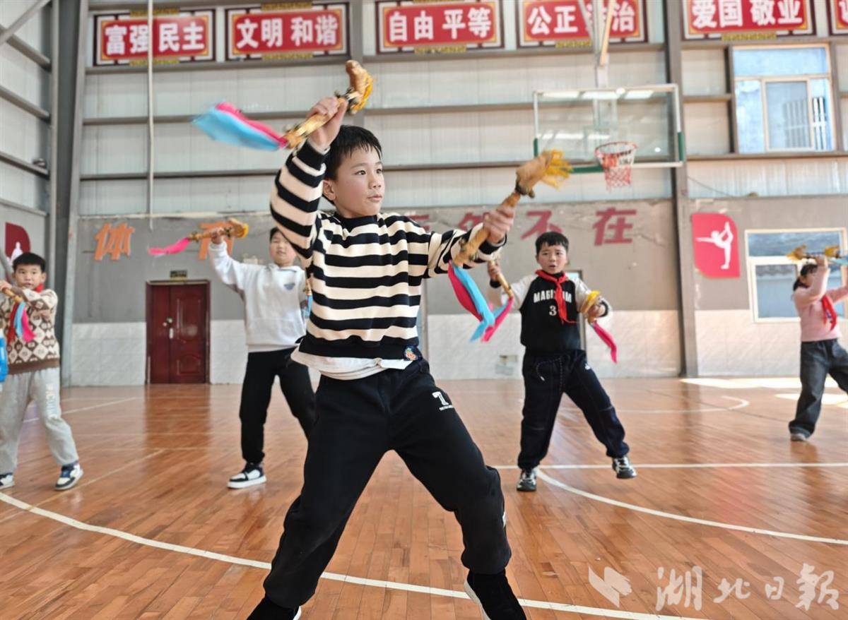 湖北日报讯(通讯员王恕森、唐炜)1月12日,宣恩县高罗镇中心小学民族舞蹈社团的学生在舞蹈老师的指导下学习八宝铜铃舞。