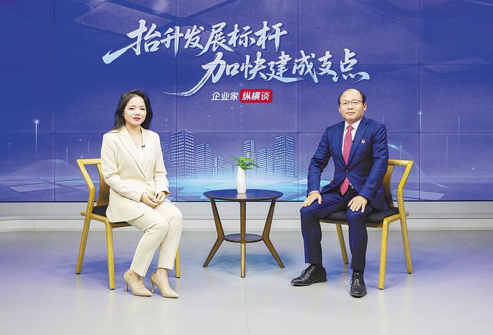 2025年12月19日,大冶特殊钢有限公司党委书记、总经理刘文学(右)做客湖北日报5G演播室,解读百年特钢企业的坚守与突破。 (湖北日报全媒记者 薛婷 摄)