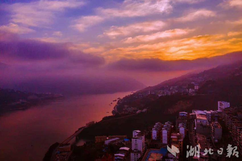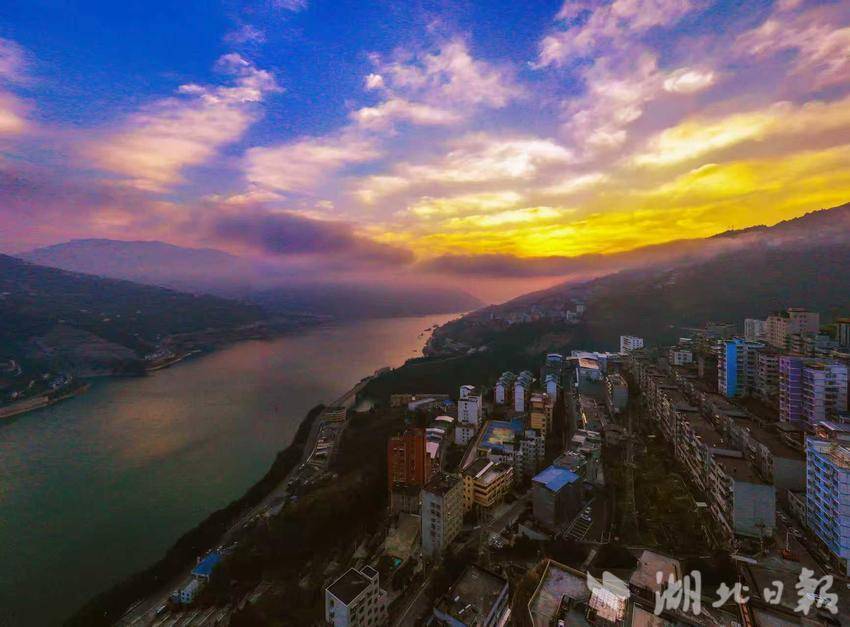 小寒的清晨应该格外清冷,可这个小寒,渐渐变得暖和起来,太阳虽迟迟不肯露脸,但三峡巴东的东方,天空泛着鱼肚白,逐渐白里透红,与天空的蓝调一比高下。沉睡的街道薄纱泛起。错落的楼群像巨人在苏醒,几点暖黄的灯光不愿离去。