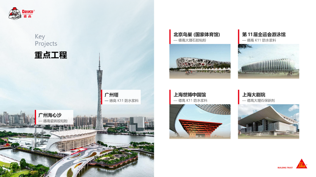 在国家级地标建筑领域,广州塔、北京鸟巢等享誉全国的标志性工程,均选用该企业的防水、胶粘产品,为建筑的长效安全运行筑牢品质根基。