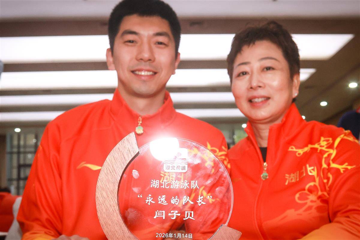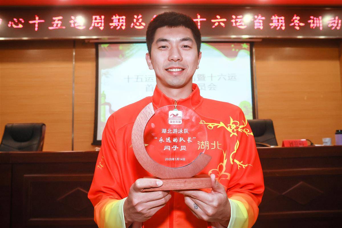 湖北日报讯(记者马明玉、时龚)1月14日,湖北省游泳跳水运动管理中心举行十五运周期总结暨十六运首期冬训动员会,已经转型为教练员的前“亚洲蛙王”、东京奥运银牌得主闫子贝,被授予湖北游泳队“永远的队长”荣誉称号,以表彰闫子贝的卓越贡献,传承湖北游跳人的坚守与担当。