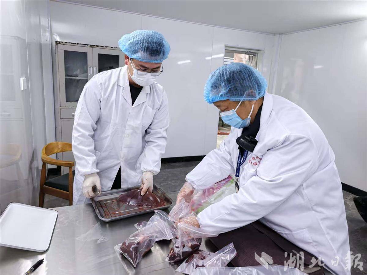 工作人员抽取猪肝进行封样。 湖北日报全媒记者杨然 摄