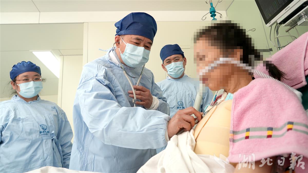 董念国在病房为吴女士进行术后体检。(受访单位供图)
