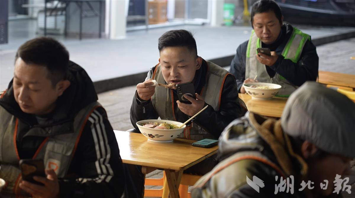 窗外街道偶有车灯掠过。面馆里的光依然亮着,等着可能进来的师傅。当晚,武汉四个点位共送出近1300份牛肉面。在这个普通的冬夜,一碗热面,一首生日歌,让奔波的脚步,有了温暖的停歇。