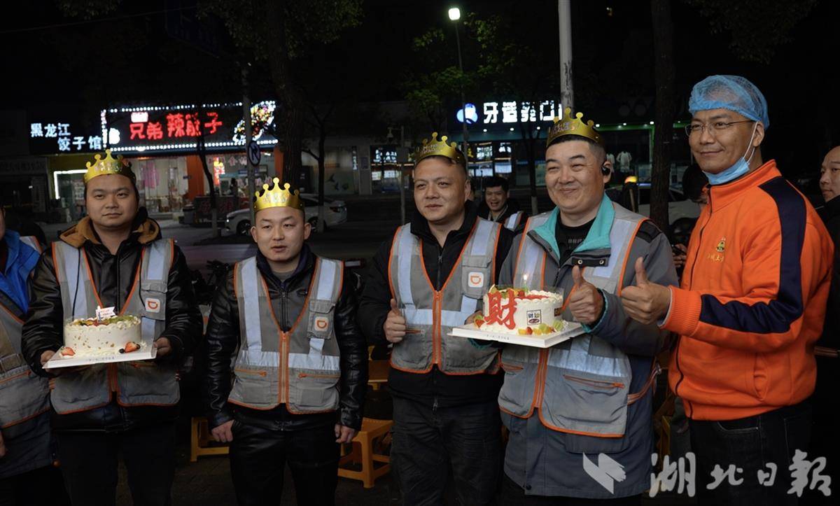 当晚,一个意外的惊喜正等着李斌师傅。1月15日是他42岁生日,当他走进面馆时,工作人员捧出了生日蛋糕。“这是我最难忘的一个生日。”李斌眼角湿润,“天天在外跑,自己的生日都记不起来了。”