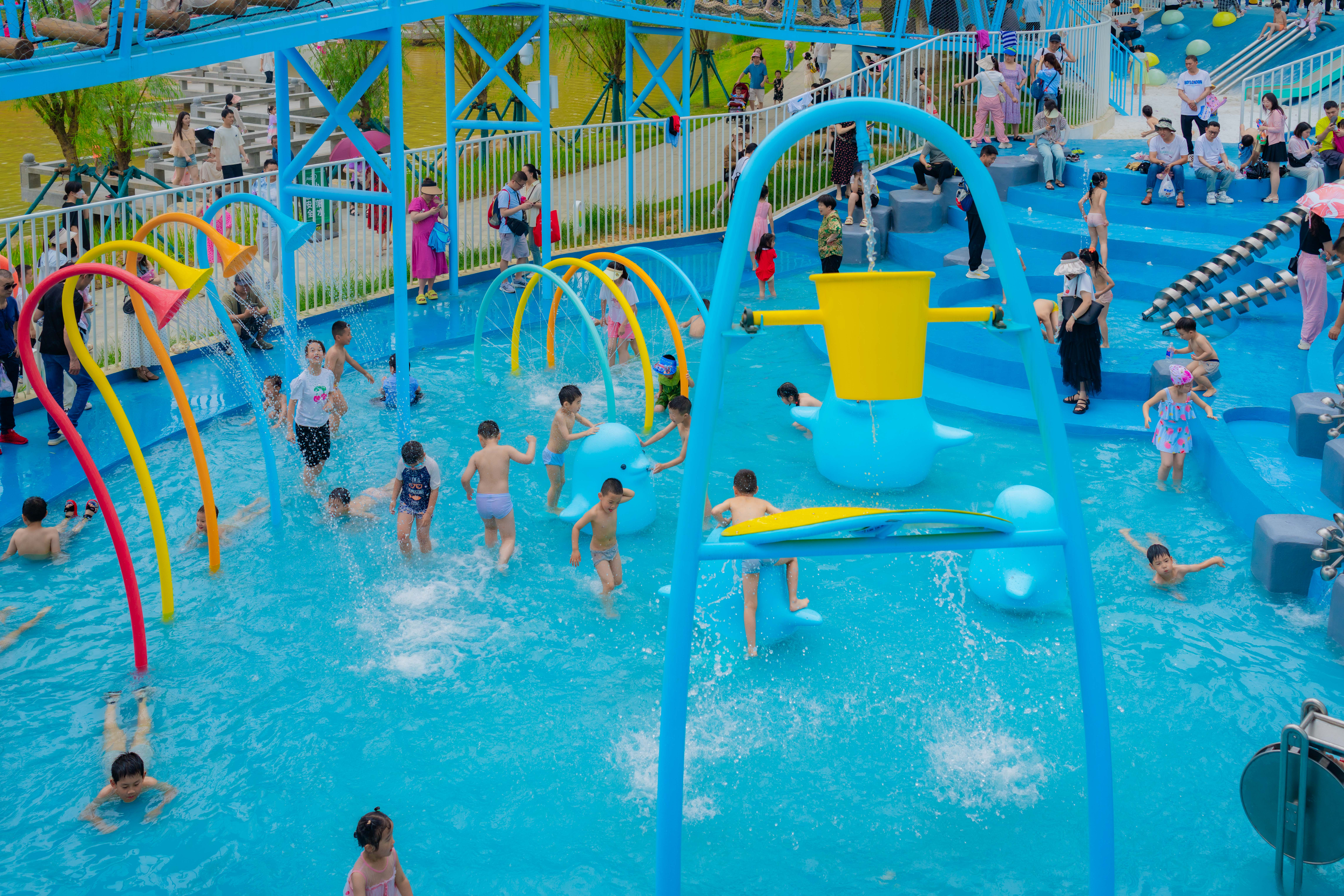 夏天市民在“豚憨憨”奇遇乐园玩耍