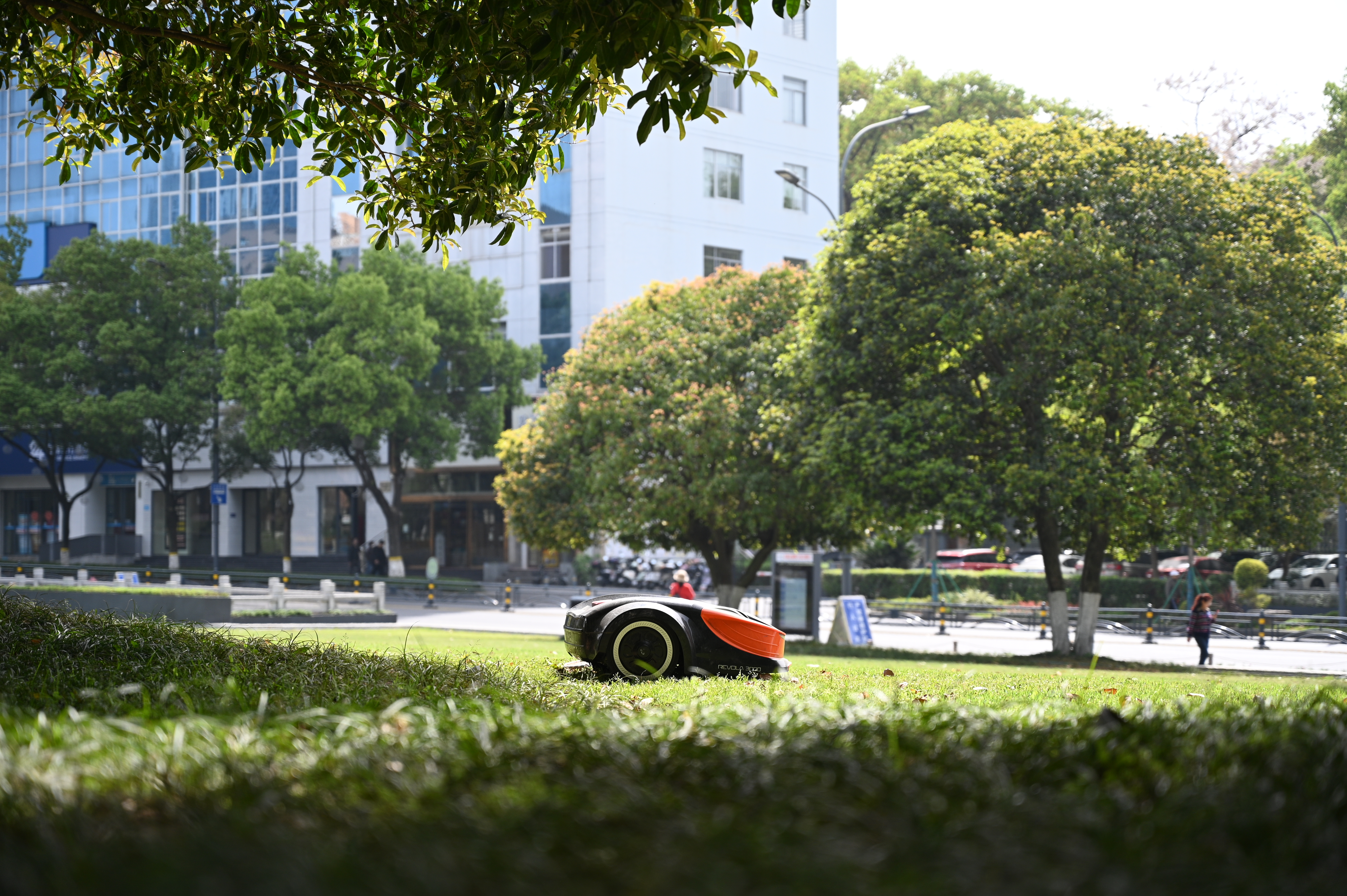 无障碍通道遍布主要入口和公厕,轮椅和婴儿车畅行无阻;智能喷灌系统、割草机器人等智慧设施,不仅大幅提升了园区管理效率,还成了孩子们眼中的“科技明星”,都忍不住驻足观察。