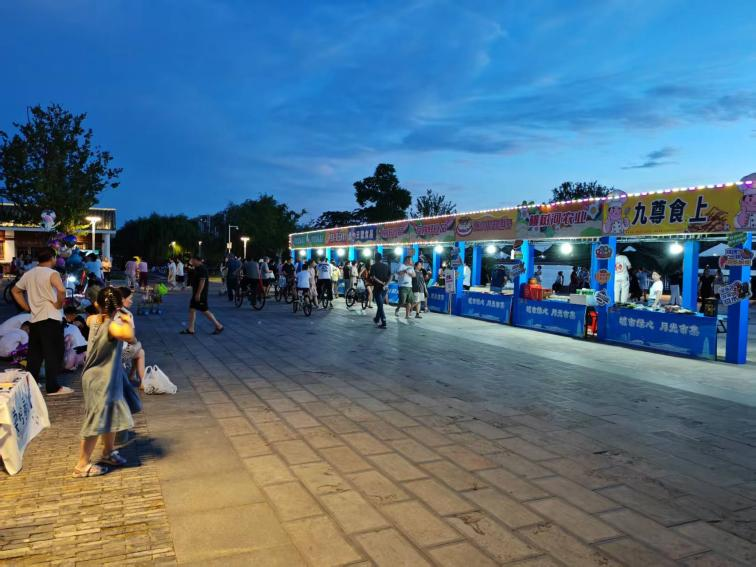 “妈妈,我要吃矮子馅饼、果冻橙,还有大鸡腿……”还没走进公园,孩子们的欢声笑语便扑面而来。“好,别急,我们一家一家慢慢逛!”2025年夏季,凤凰湖公园创新“公园+夜间经济”模式,在南广场划定美食、文创功能区,规范摊位管理、完善夜间配套,举办32场月光市集、文化展示等活动,每场主题市集吸引约1500人(次),带动日均消费2万余元,让公园夜晚充满烟火气与生命力。