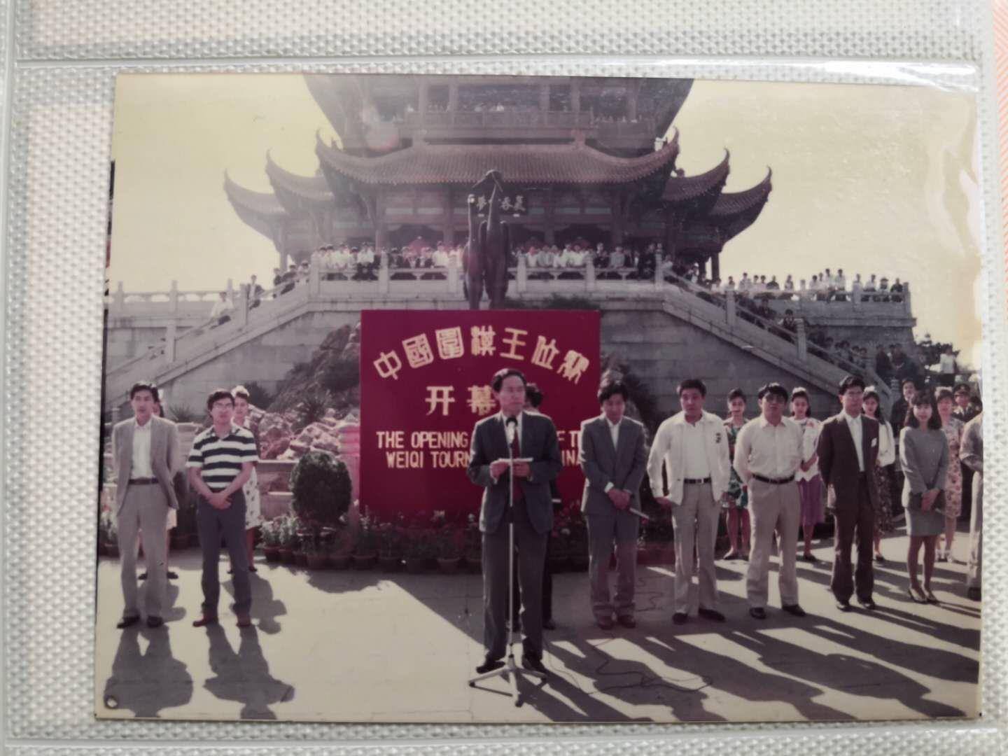1990年,聂卫平(右三)受邀来到武汉,在黄鹤楼参加中国围棋王位赛。
