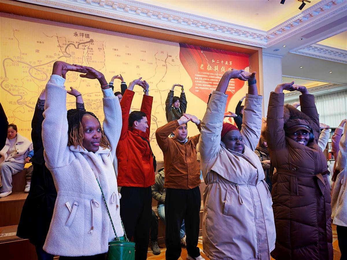 蒙古留学生芳晴则现场学起了八段锦,十分投入。“作为一个外国人,刚到新的环境,精神总是很紧张,但每次看到有老人在学校操场上打太极拳的时候,那种舒缓的节奏和动作会让我觉得放松和愉悦。我刚刚自己做这些动作,感觉到身体被拉伸,呼吸也很放松。”芳晴说,我也会教给我的家人和朋友。
