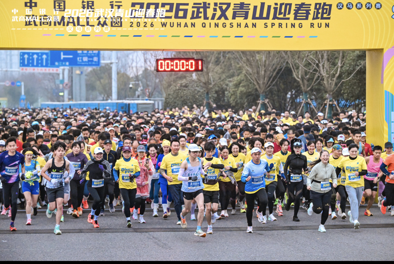 1月18日上午8时,汉马系列赛·2026武汉青山迎春跑在青山区人民政府门前鸣枪开跑,8000余名选手沿着青山江滩奋勇向前,用脚步感受青山发展脉动。