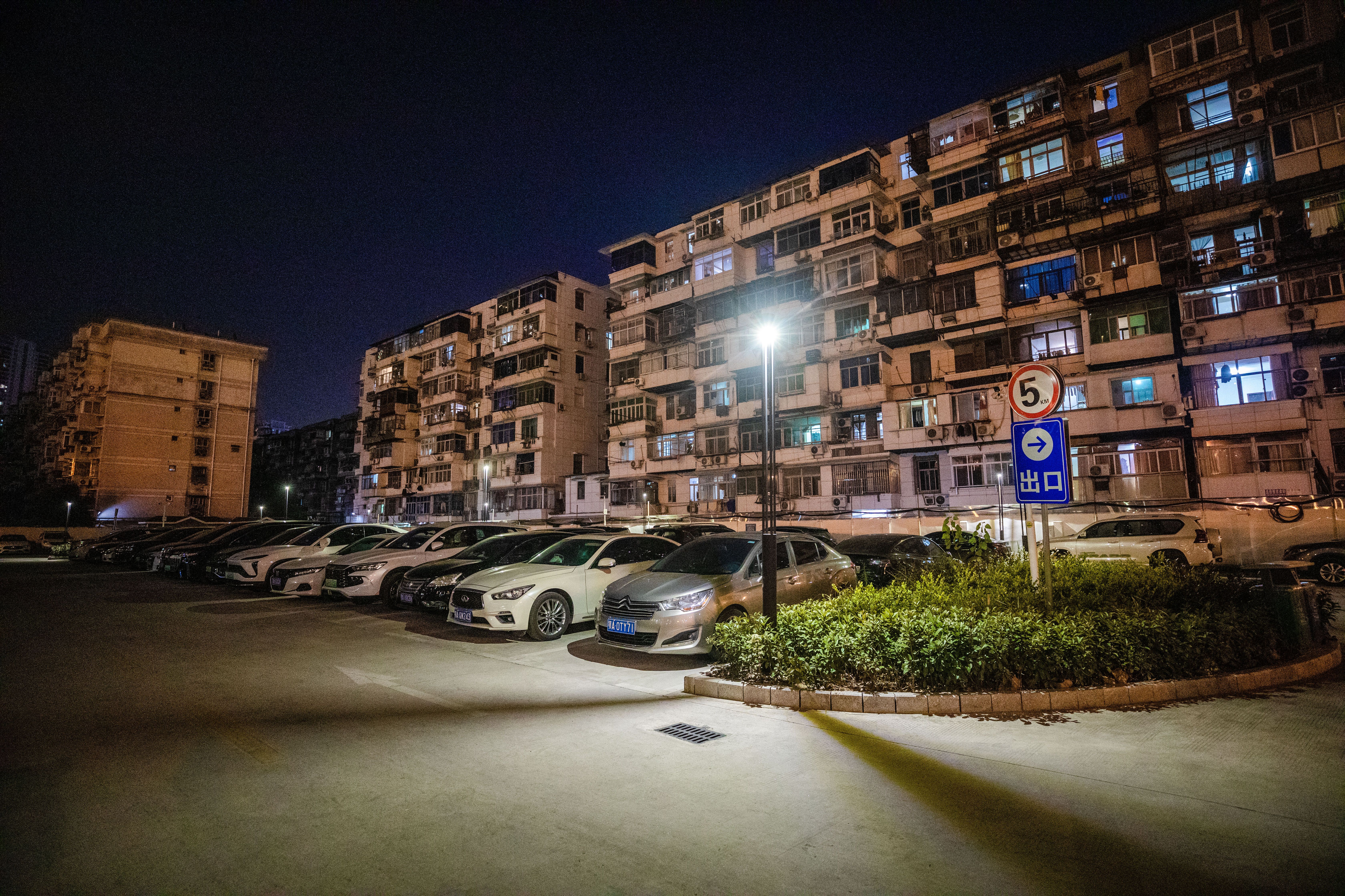 两湖路停车场,夜晚停满了附近居民的车。 通讯员供图