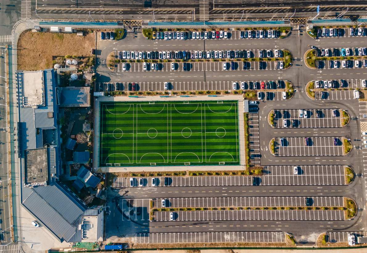 记者在杨泗港都市T台停车场实地走访发现,该停车场紧邻热门打卡地杨泗港都市T台,停车区域旁还配套建设了4片五人制足球场。