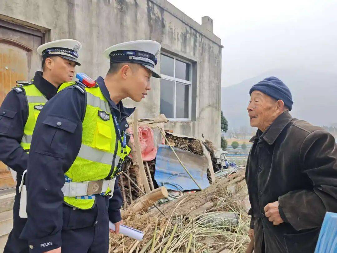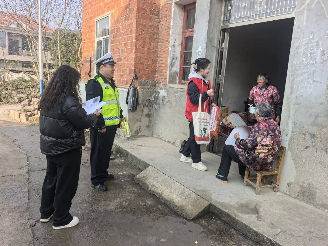 ▲襄阳交警走进高速沿线村庄,入村入户开展恶劣天气安全出行提醒。