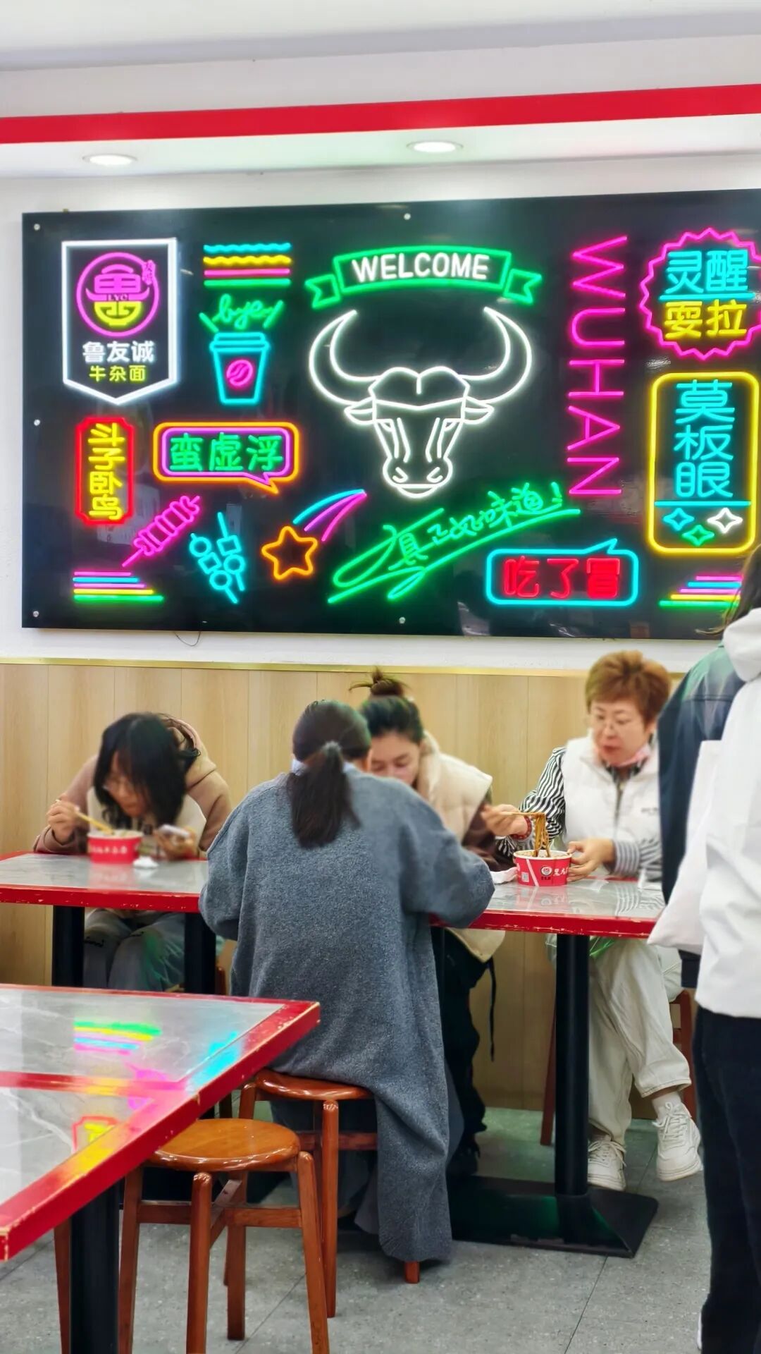 案台上,热干面、手工面、米粉码得整整齐齐,老板煮面的动作像是一场紧锣密鼓的表演:抓粉、下锅、焯水、捞起,转身浇汤,再铺上一大勺牛肉牛杂,整个过程一气呵成,没有半分拖沓。