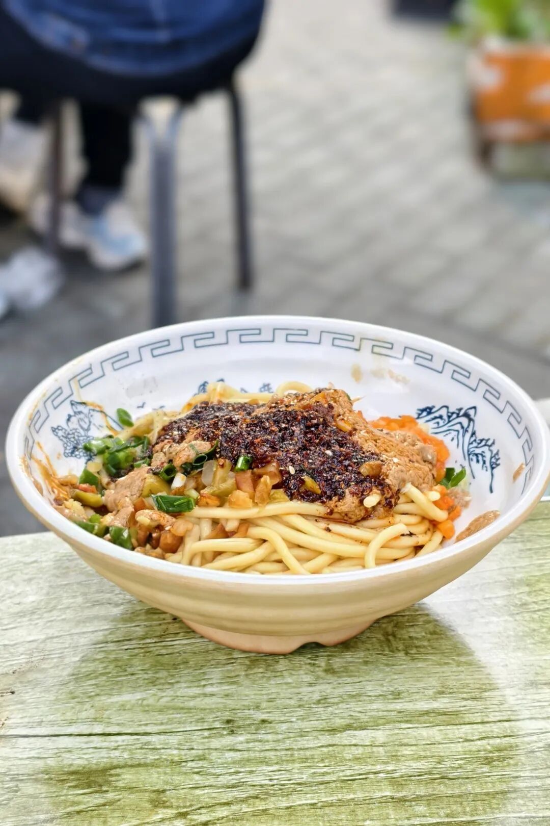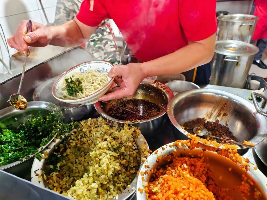 打佐料时,老板也会细心询问每一位顾客的口味:“吃不吃辣、要不要葱花?”最后还会细心擦干净碗边的芝麻酱,简直是“强迫症福音”。最后笑着用双手递出,仪式感满满。