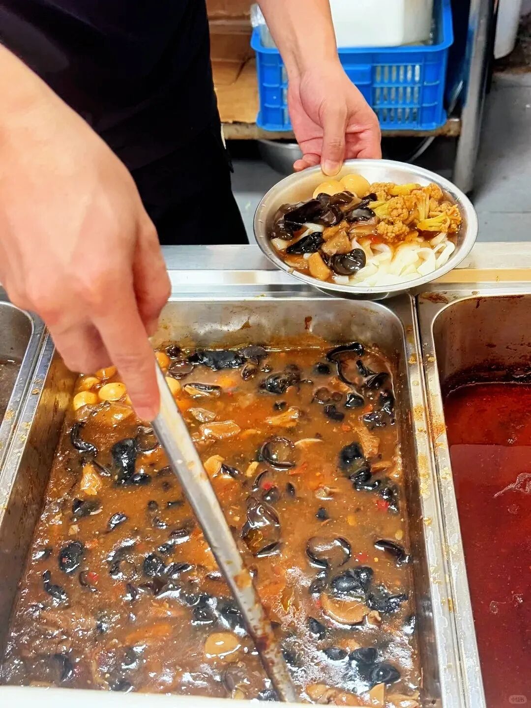 就连素粉也不敷衍,一勺三鲜臊子堆得冒尖,再添上几筷子卤得油润的花菜,简单里透着讲究。