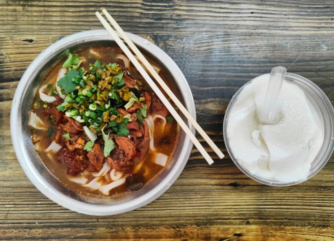 老食客会寻着味到这,开口就点招牌——卷边宽粉配牛肉,米粉边缘卷着俏皮的弧度,每一口都能裹满浓醇汤汁。