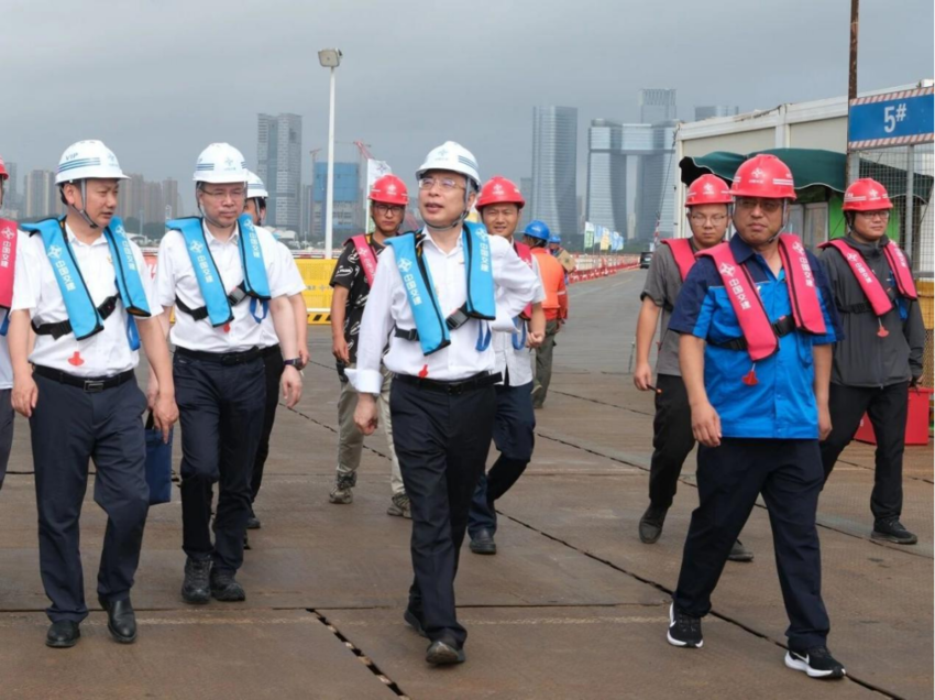 孙立强听取了关于项目概况、重难点分析、履约进展、安全质量管理、存在问题及下一步计划的汇报。他指出,厦金大桥(厦门段)作为国家重大战略工程,意义重大、任务艰巨,务必按照“平安百年品质工程”总要求,扎实做好各项工作。当前正值施工关键期,全体参建人员要始终绷紧安全之弦,严把质量关口,强化风险管控,以进度计划为统领,统筹推进安全、合规、创新、创优、创效各项工作,确保工程优质高效推进。要立足项目特色,打造示范亮点,展现央企实力,以更高标准、更严要求将厦金大桥(厦门段)打造成经得起检验的精品工程、行业标杆和示范样板。