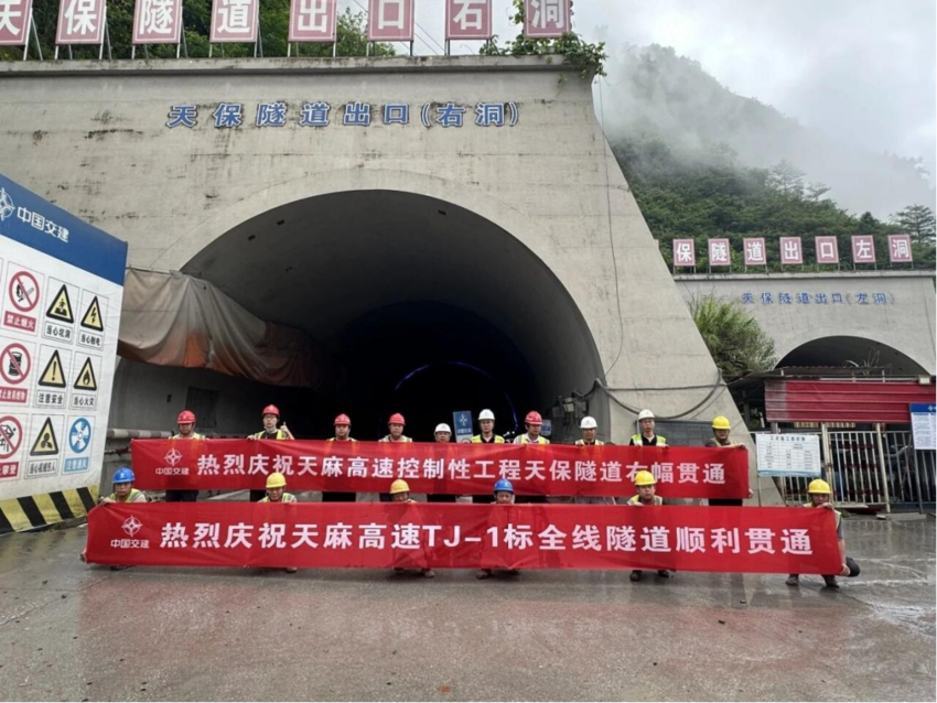 天麻高速公路项目位于云南省文山州麻栗坡县境内,线路全长约52.8公里。天保隧道是其控制性工程,左幅全长4076米,右幅全长4152米。隧道最大埋深328.35米,属深埋特长隧道,其中左幅于5月26日贯通。