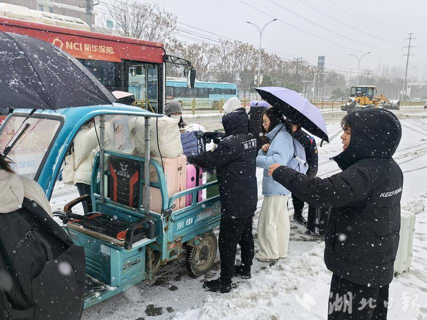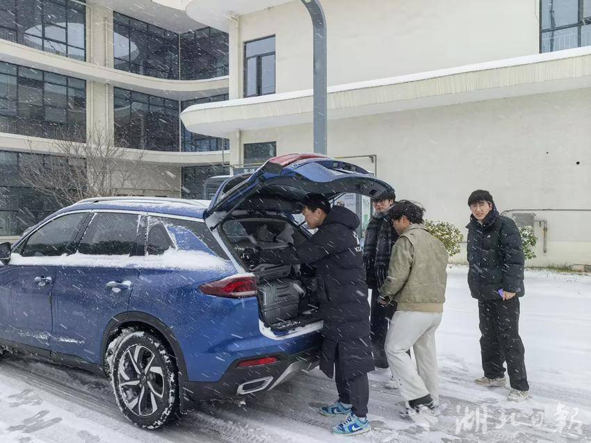 “这点雪不算什么,能让孩子们平平安安回家,比什么都重要。”为切实解决学生离校难题,该校教师志愿者主动驾车穿梭于校园与火车站之间,接送有需要的学生。他们冒着严寒与路滑风险,往返奔波、耐心等候,“本来还在发愁怎么拖着行李在雪地里赶车,没想到老师主动提出送我们,真的太感动了!”即将踏上返程列车的学生们分享。