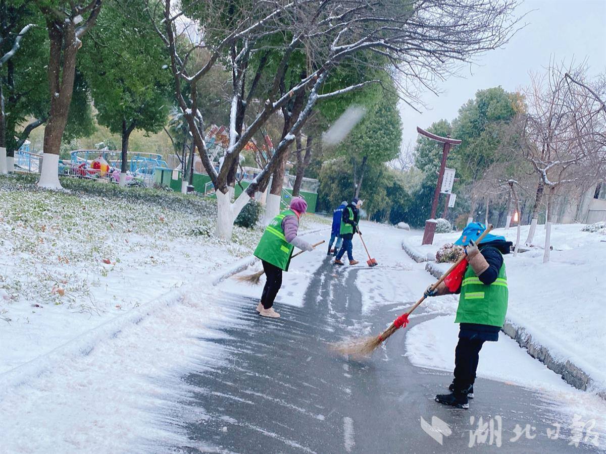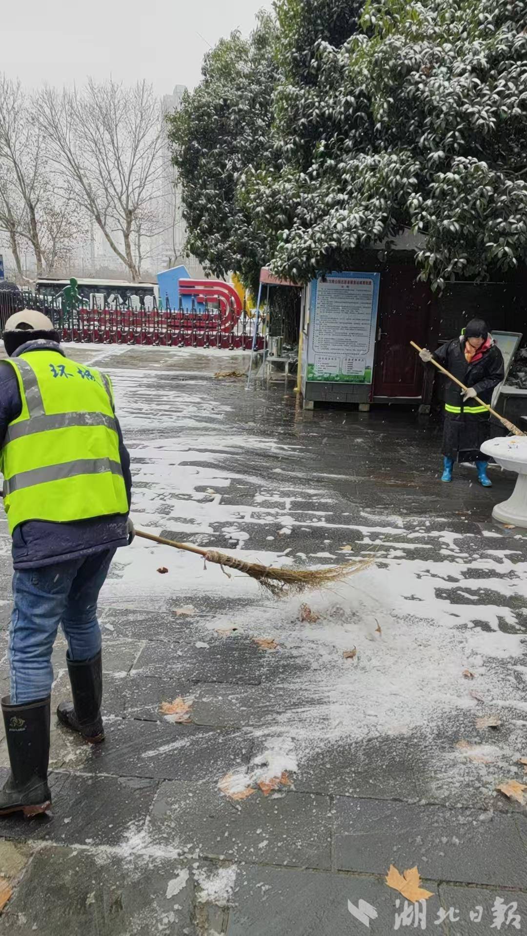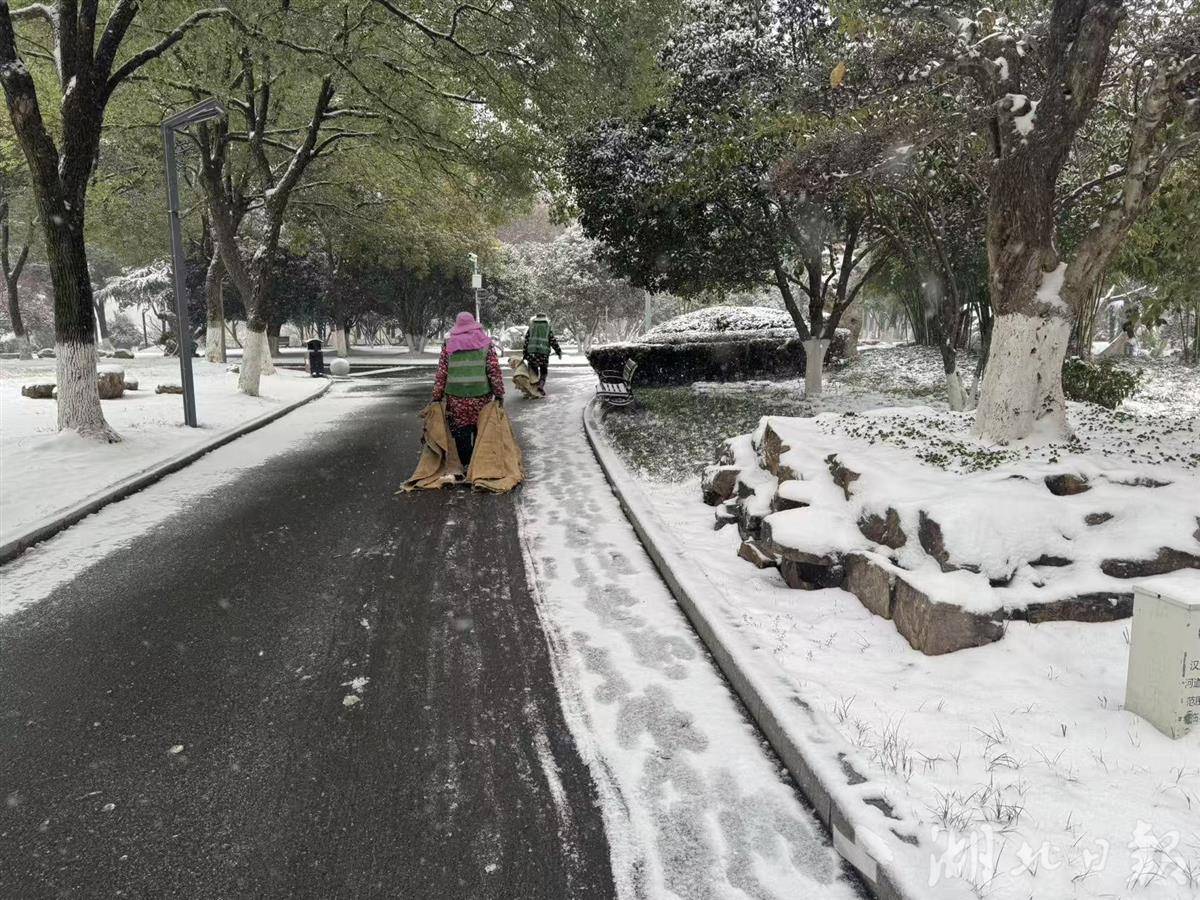 湖北日报讯(记者杨文漪、通讯员余后梁)今日清晨,武汉迎来今冬首场明显降雪。随着昨夜起雨雪渐强、气温持续走低,全市道路与公园绿地出现不同程度积雪。为确保市民出行安全和城市园林景观面貌,市区园林部门按照前期工作部署,迅速转入应急作业状态,全力开展扫雪除冰工作。