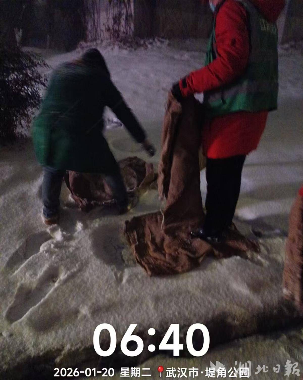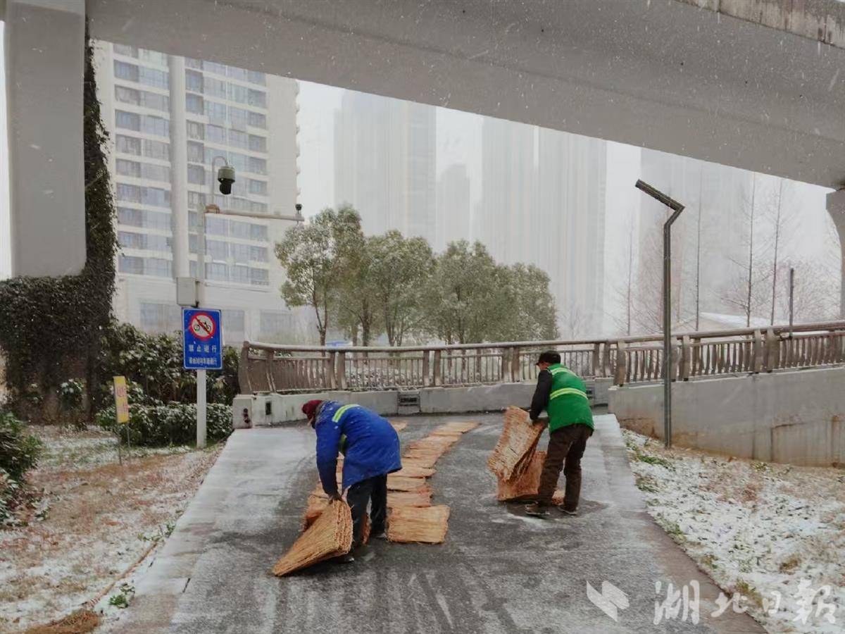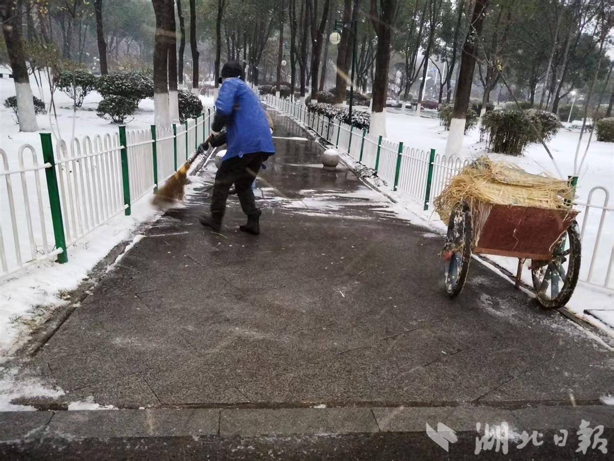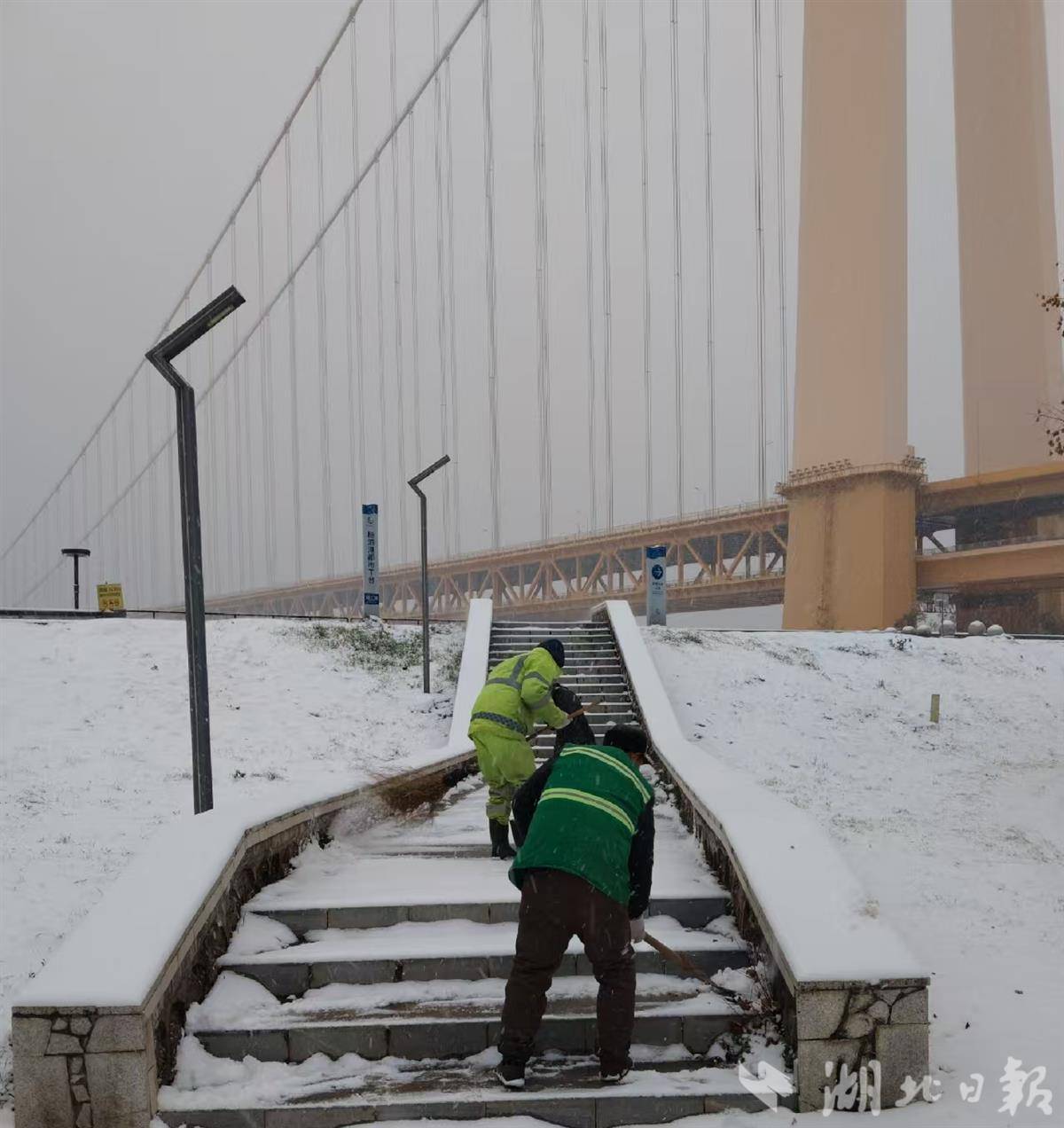 湖北日报讯(记者杨文漪、通讯员余后梁)今日清晨,武汉迎来今冬首场明显降雪。随着昨夜起雨雪渐强、气温持续走低,全市道路与公园绿地出现不同程度积雪。为确保市民出行安全和城市园林景观面貌,市区园林部门按照前期工作部署,迅速转入应急作业状态,全力开展扫雪除冰工作。