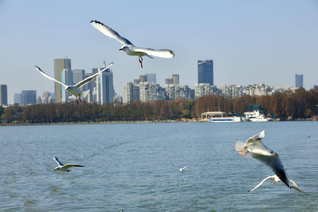 据武汉观鸟协会观测,飞抵武汉东湖越冬的西伯利亚红嘴鸥数量接近500只,达到峰值。红嘴鸥的到来,不仅让东湖的冬季从旅游淡季逆袭为“观鸥旺季”,更成为武汉城市形象的鲜活名片。“鸥随船动”的震撼画面在社交平台持续刷屏,周末客流量较往年翻倍增长,让“冬季到武汉看鸥”成为新的城市文旅IP。东湖游船工作人员代唯感慨道:“以前冬天游船码头冷冷清清,现在每趟船都座无虚席,外地游客专门冲着红嘴鸥来武汉。”