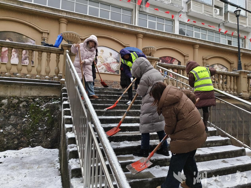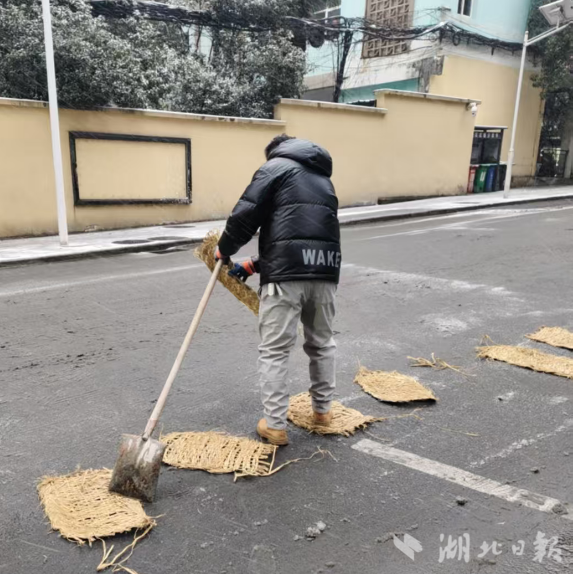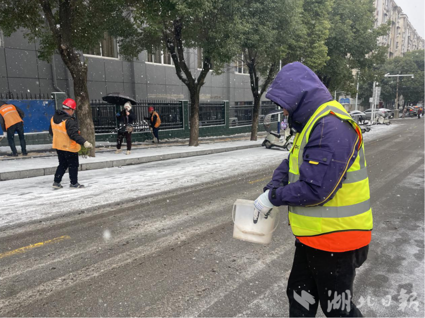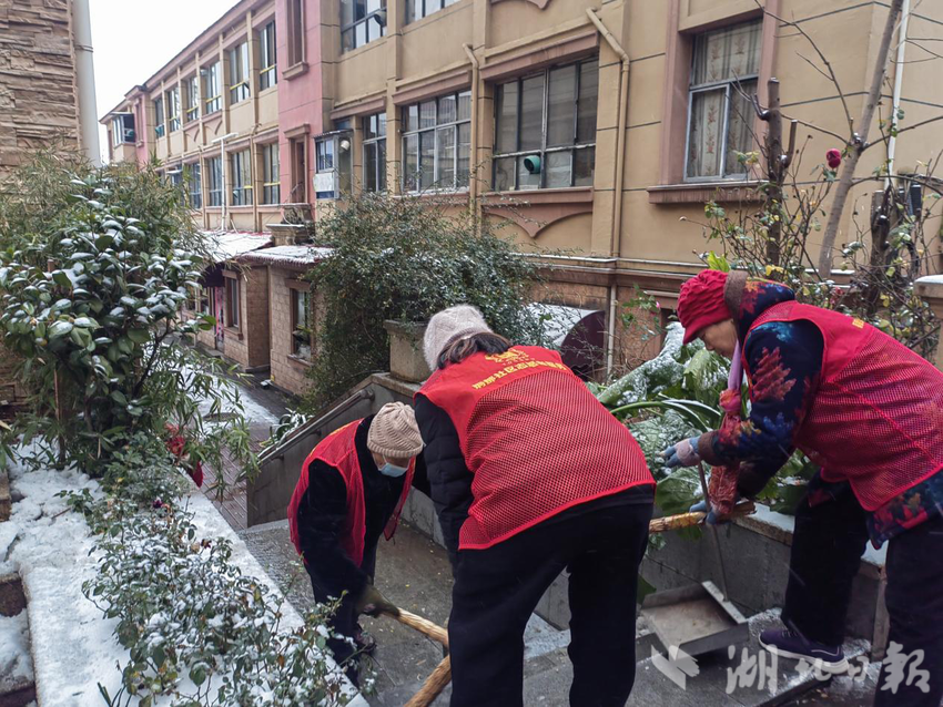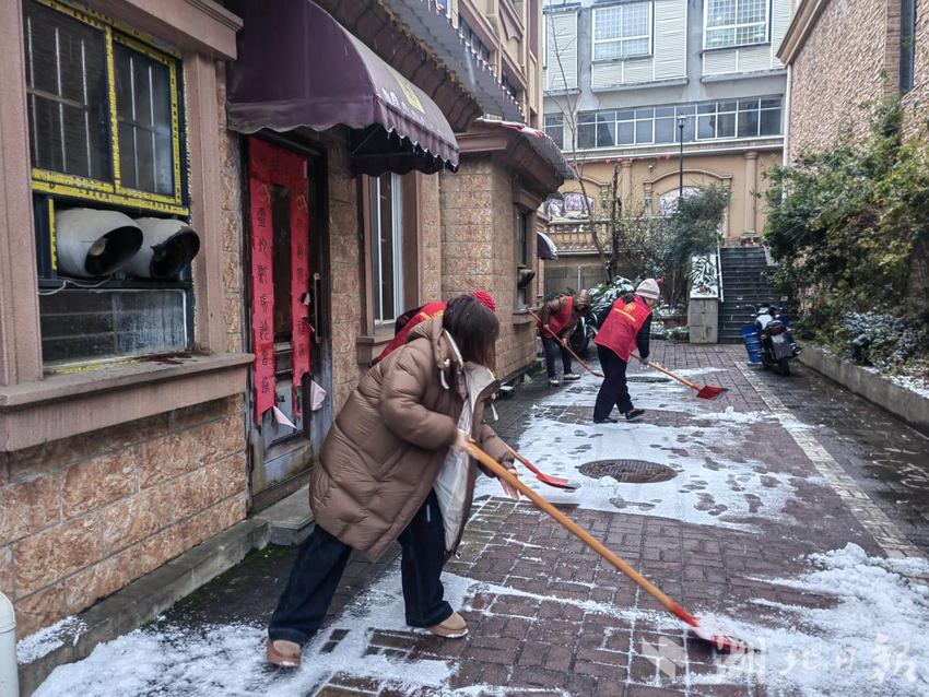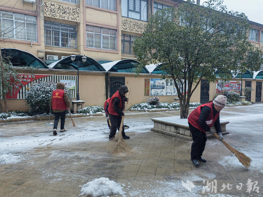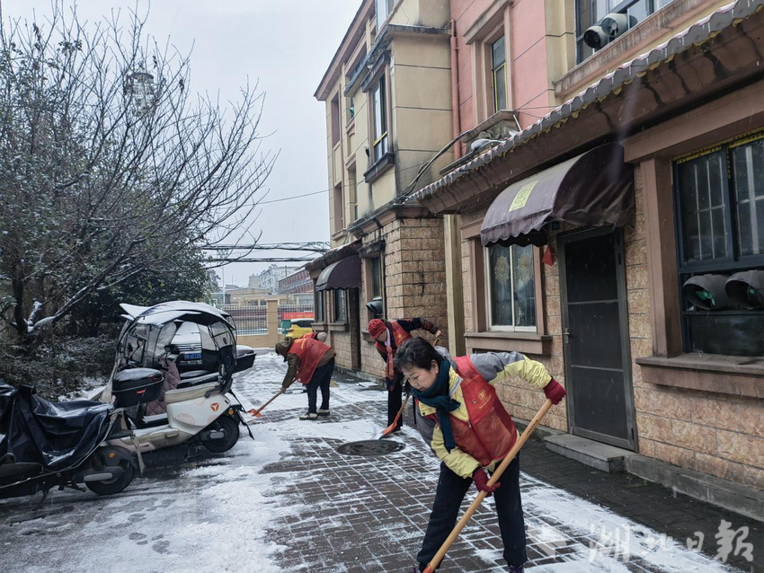 湖北日报讯(通讯员方泳竹)“银装素裹的铜都社区虽然添了美景,却也给居民出行与生活带来诸多不便,我们辛苦点让大家出行更安全,值得!”“同志们辛苦了,大家一起干一点也不冷了啊!”凌晨,黄石市下陆区铜都社区刘国保志愿服务队长陈春丽、副队长陈金华带着30多名志愿者在铜都社区辖区内清理主次干道积雪。