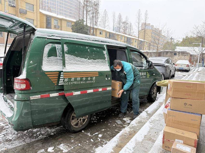湖北日报讯(记者王哲、通讯员肖芳、胡礼莎)19日一夜风雪,武汉全城银装素裹,路面积雪为城市运行和群众生活带来了挑战。但在武汉街头巷尾,身着绿色工作服的邮政投递员们依然顶风冒雪、踏冰前行,确保报刊、包裹、信件及时送达市民们手中。1月20日,武汉市邮政分公司全市124个揽投部、邮件分拨处理中心,全部正常运行,全天预计派送邮件60万件,党报党刊33万份。