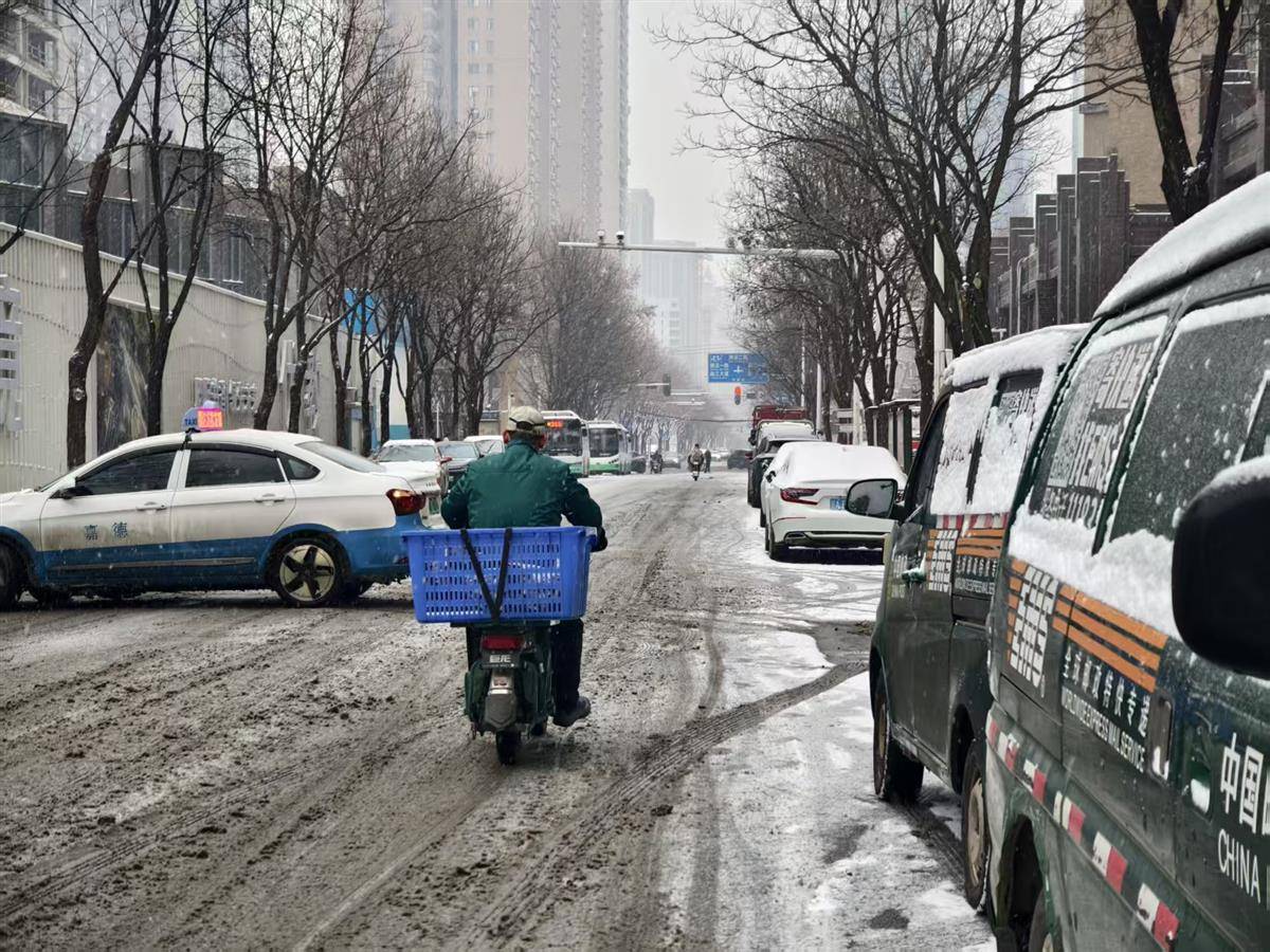 “雪下大了,路面打滑,雪花飞舞也影响了视线,遇到路况不好的路段,我就推着车往前走,只希望邮件能安全及时送达。”江岸区分公司上海路揽投部的投递员喻少峰说。因为雪天出行比较艰难,他在投递途中花费的时间较平时增加一倍多,所以出班一趟尽可能多带些邮件,并在出班投递前仔细地将报纸放入随身的邮包,将邮件用防雨布等包裹好,避免邮件打湿。当天上午他共计投递了包裹、报纸150余件。