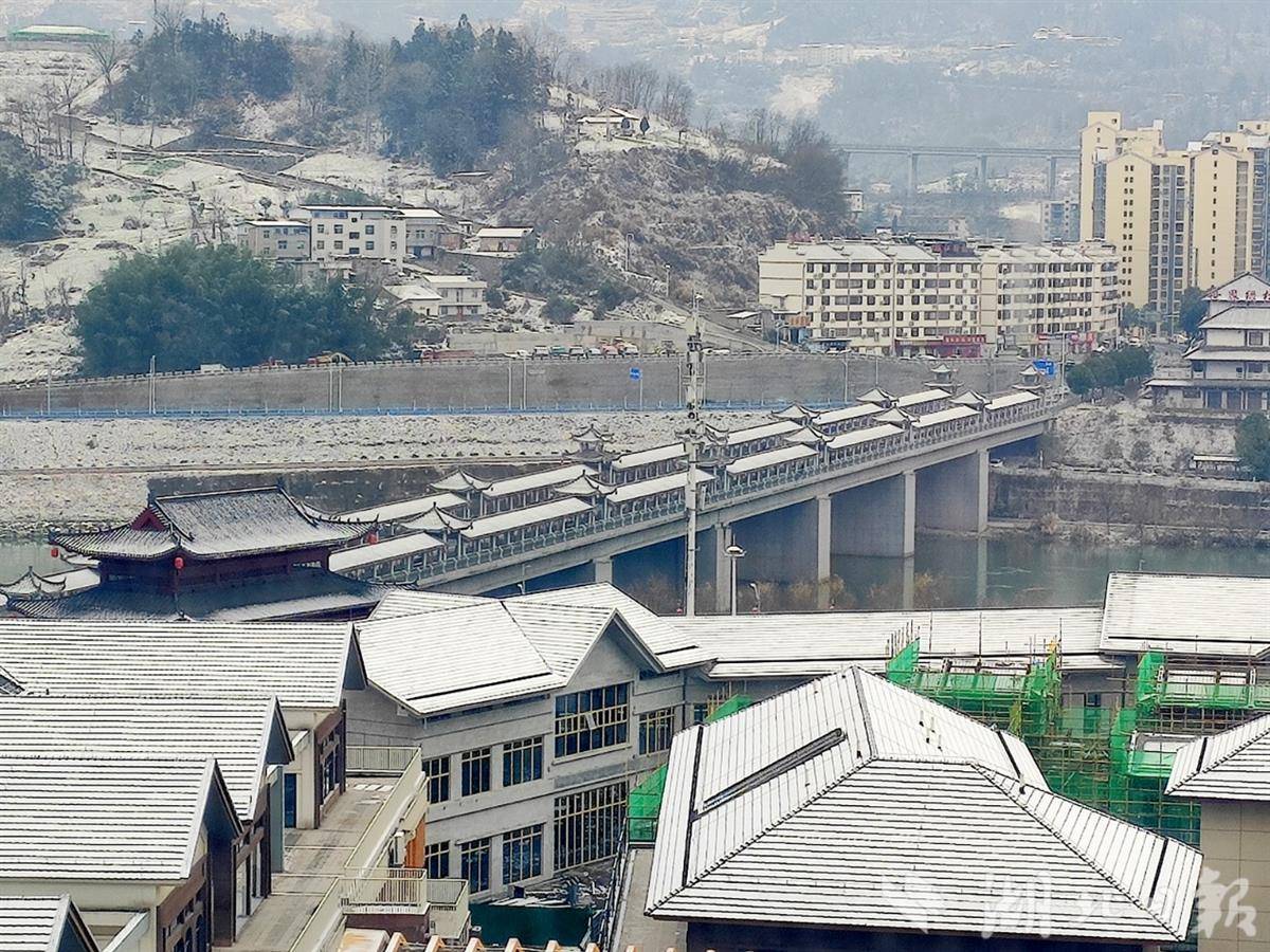 湖北日报讯(通讯员张云朝)1月20日,晶莹的白雪覆盖着竹山堵河廊桥,构成了一幅水墨画卷。