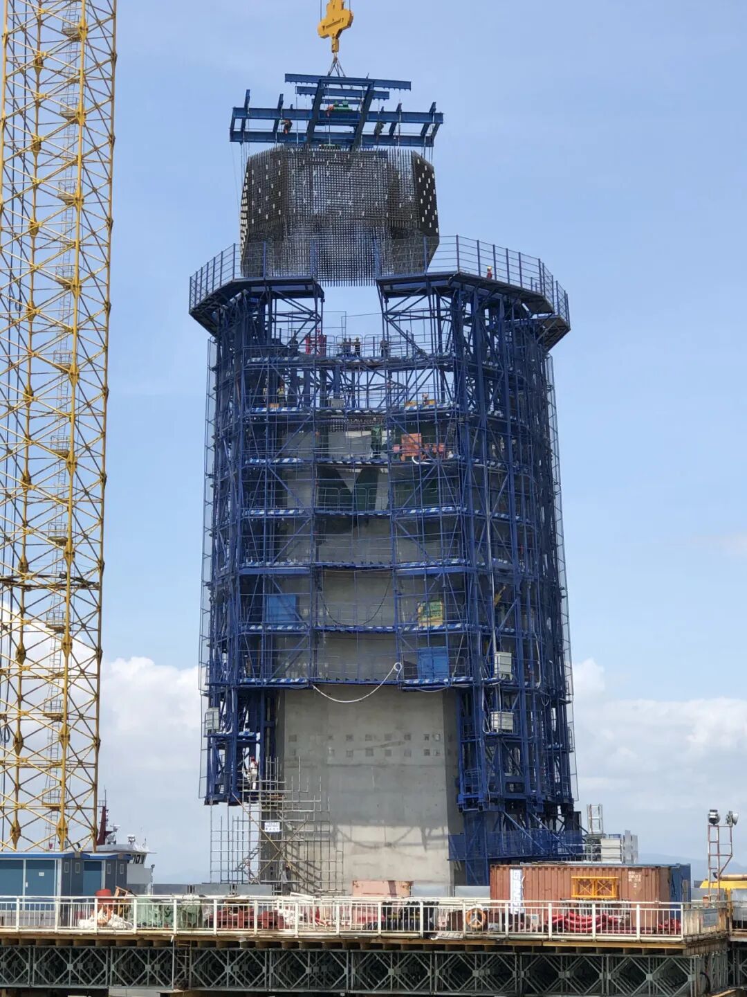 搭建混凝土桥塔“竖向移动工厂”