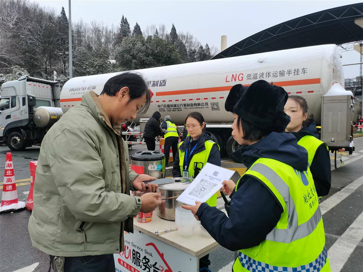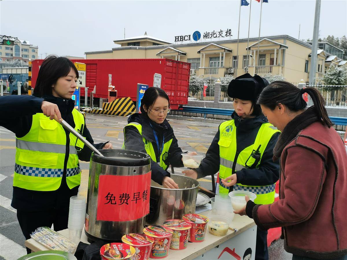 “白米粥、黑米粥、小米粥、鸡蛋面、菠菜面、水煮蛋、方便面,您要哪几样?”湖北交投鄂西北运营公司十堰东管理所所长叶敏率领团队扫了大半夜雪,早上6时就叮嘱食堂多备些早餐,分发给高速路口排队等候的货车司机。